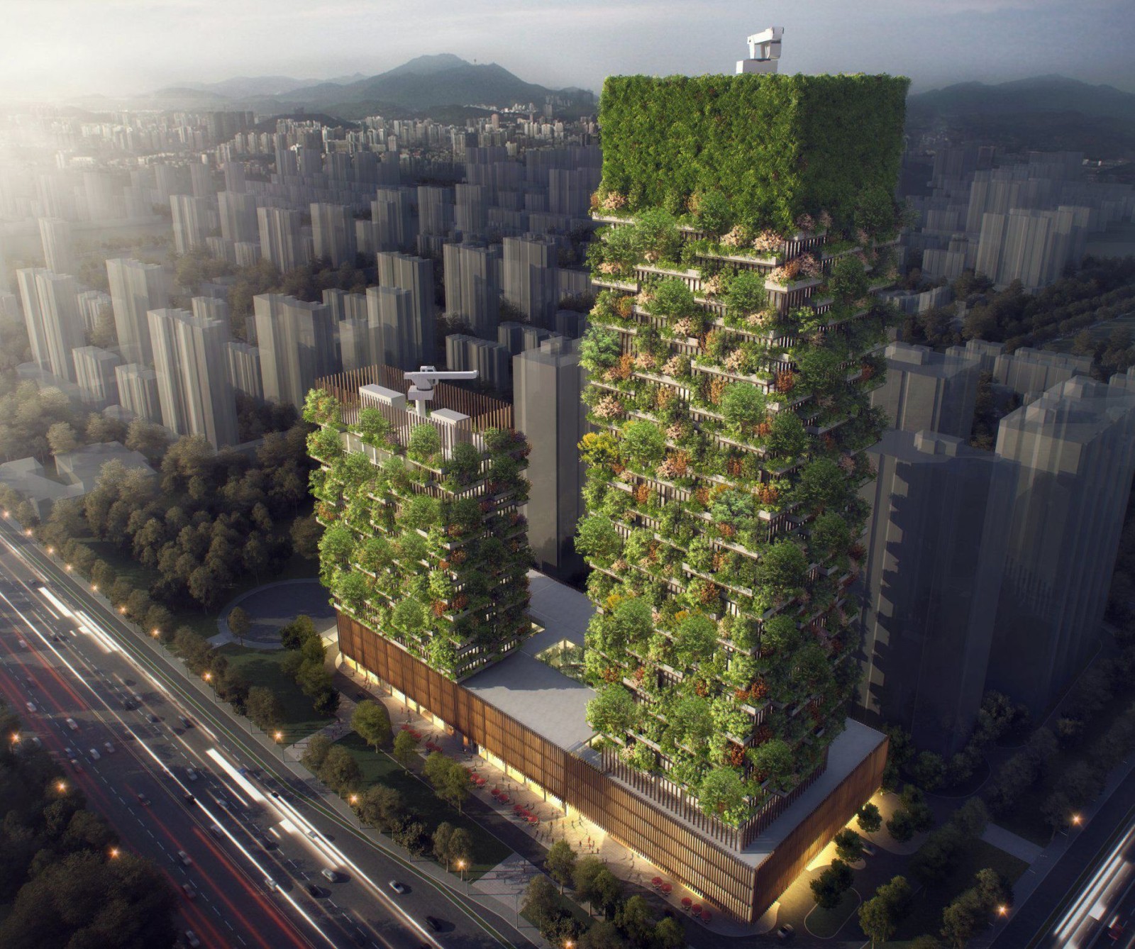 В Китай няма много място за садене на дъвета по улиците, а въздухът става все по-мръсен. Затова, според архитектите, трябва да има така наречените "вертикални гори" - огромни офис сгради, чиито прозорци и тераси са покрити с естествена зеленина. Планът предвижда във външната част на тези кули да има по 600 високи дървета, 500 средни и 2500 по-малки видове растения. Това ще бъде не само красиво, но и полезно за природата.