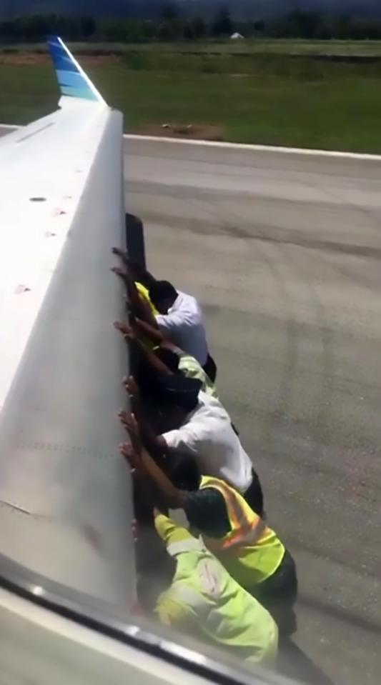 На необикновена гледка станаха свидетели на един от екзотичните острови в Източна Индонезия. Служители на летището в Нуса Тенгара помогнаха на пилот, като бутат самолета му. Причината - пропуснат завой към оказаната писта.