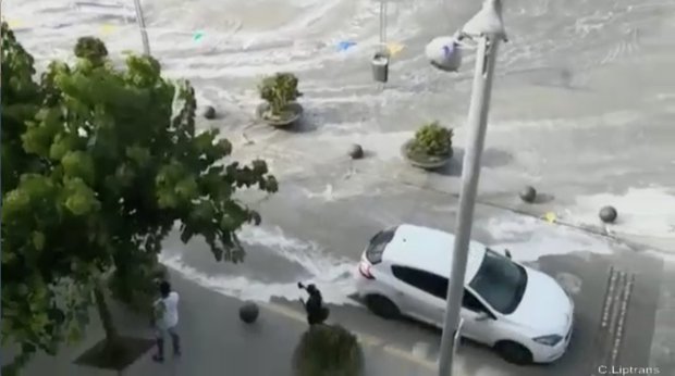 В понеделник сутринта ударна вълна с височина близо пет фута заля град Читадела, на испанския остров Менорка. Близките плажове също са наводнени. Феноменът също засегна ваканционните курорти в Майорка. Барове и тераси на крайбрежните заведения са под вода.
