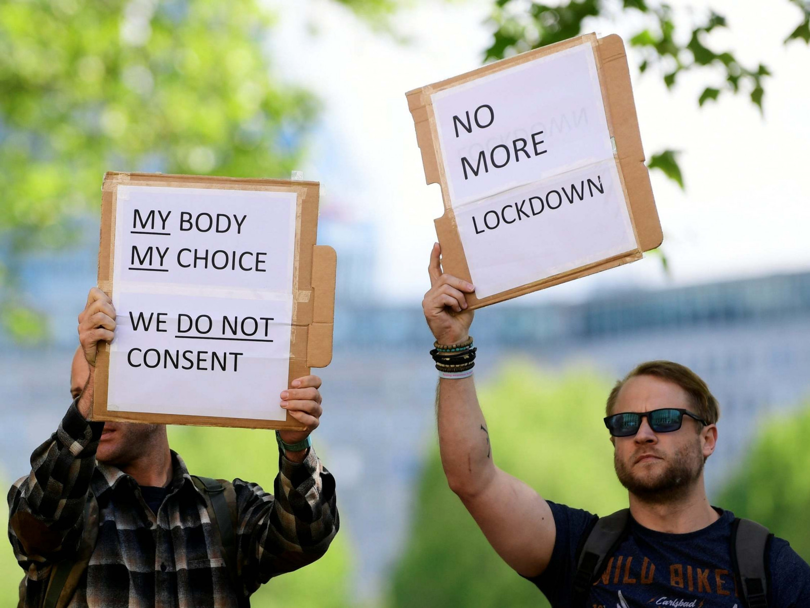 Редица демонстранти носеха табели с надпис „моето тяло, моят избор“ - лозунг, достатъчно ясно изобразяващ техните притеснения от евентуално задължително ваксиниране срещу Ковид19, а и срещу задължителното носене на предпазни маски!