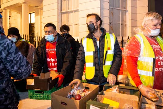 Благотворителната организация Rhythms of Life, осигурява безплатна храна за нуждаещите се лондончани. Мистър Харис каза още, че нуждаещите се от безплатна храма са се увеличи двойно за последните месеци и продължават да се увеличават.
