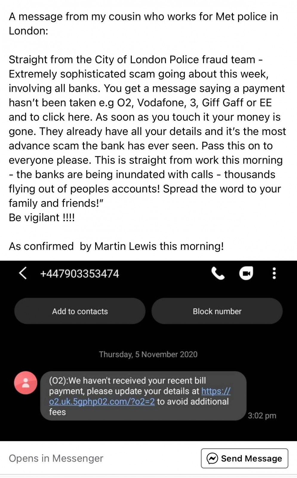 В някои лондонските Фейсбук Групи предупреждават за изключително сериозна измама.