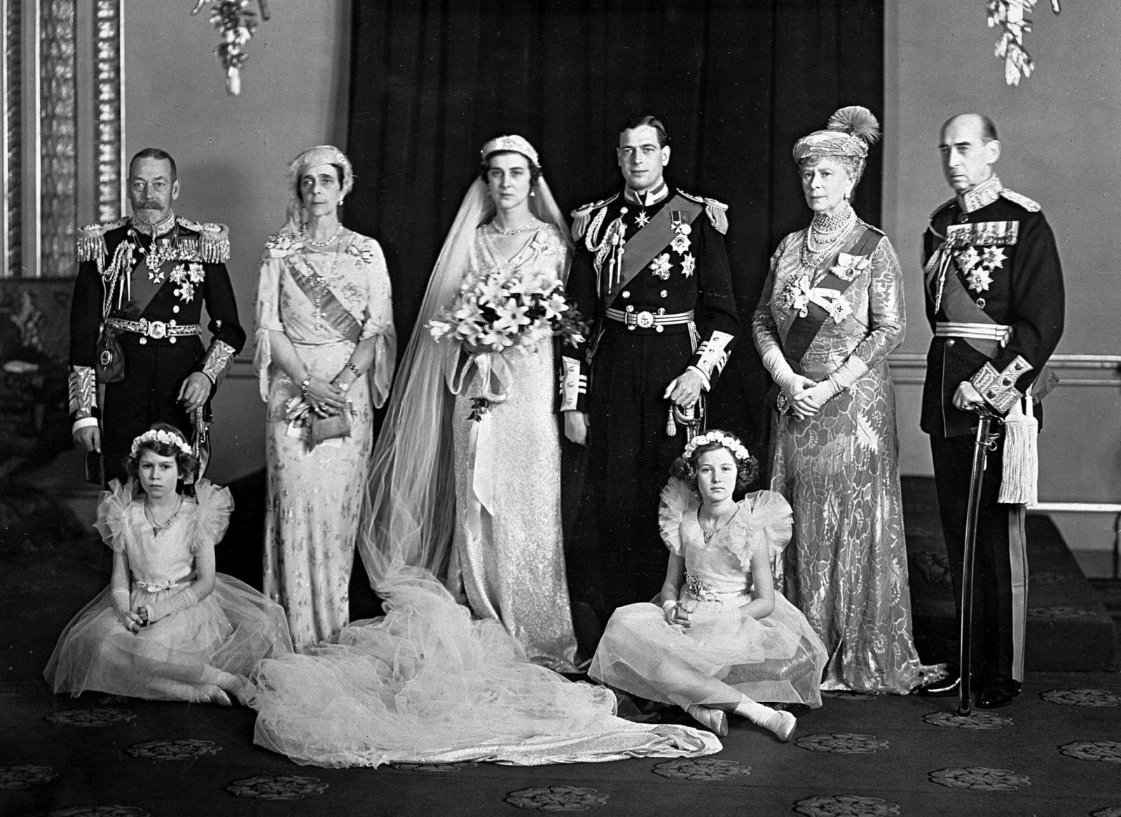 Двойката има около 2000 гости. Церемонията се излъчва по Би Би Си радио и е следена от над 200 милиона души. Зашеметяващата сатенена рокля на булката е дело на сър Норман Хартнел. Тя е покрита с кристали и 100 000 перли, а в допълнение към нея Елизабет носи тиара с диаманти.