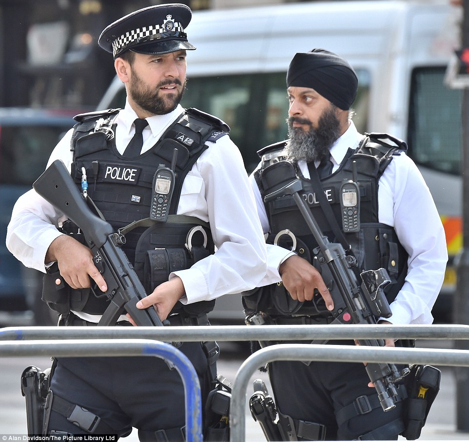 От десетилетия сикхите имат право да носят чалми, както в британската армия, така също и в полиция! Религията на сикхите представлява смесица между хиндуизма и исляма и дрехите им най-грубо казано са смесица и от двете религии.