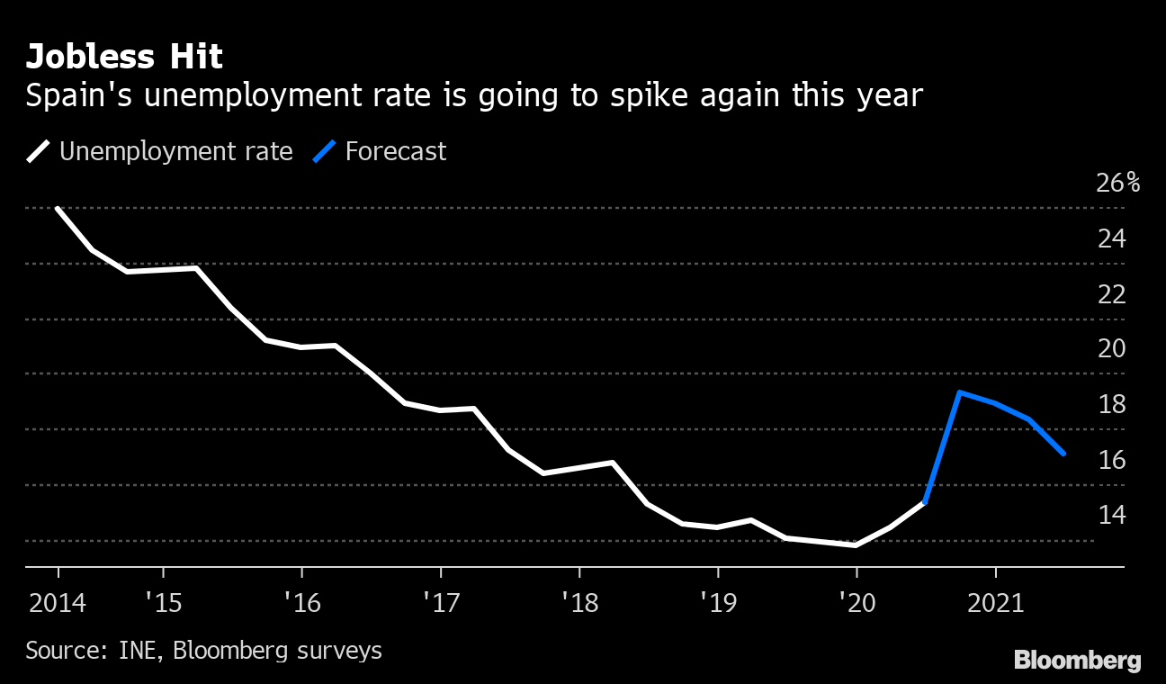 Пандемията накара правителството на Педро Санчес да отпусне повече бюджетни средства за подпомагане на изпадналите в затруднения испанци. Само през месец май по време на първата вълна под формата на обезщетения бяха изплатени над 5 милиарда и 480 милиона евро, най-голямата сума разпределяна до сега.