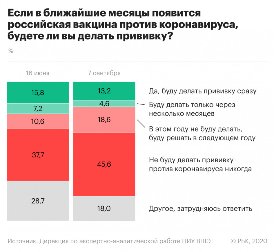 Заместник-кметът по социалното развитие Анастасия Ракова съобщи, че на 20 000 московчани вече е поставена ваксината „Спутник V“ в рамките на пострегистрационните клинични изследвания. Част от доброволците са получили плацебо и едва около 1.5% от ваксинираните са се разболели от коронавирус. Според Ракова това е добър показател за ефективността на руската ваксина.