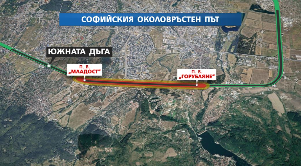 Министър-председателят провери новата отсечка на Южната дъга между „Младост“ и "Горубляне", където днес пуснаха движението. С него е и заместник-министърът на регионалното развитие и благоустройството Николай Нанков, който е именник.