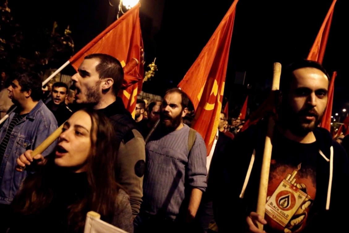 Активисти на младежката организация на комунистическата партия скандираха лозунги срещу правителството, като носеха транспарант с надпис: "Хиляди са реалните жертви на пандемията, мизерията, безработицата и глада".