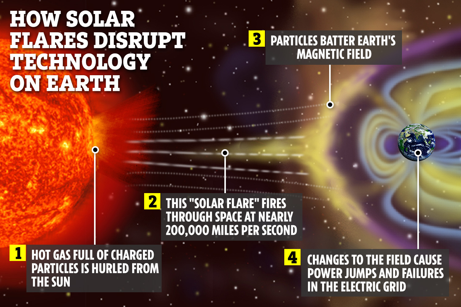 Те, също така, излъчват обилно радиовълни. Ако изригването е по посока на Земята, частиците от него могат да навлязат в горната земна атмосфера (йоносферата) и да предизвикат ярки северни сияния и дори да нарушат радиокомуникацията на дълги разстояния.