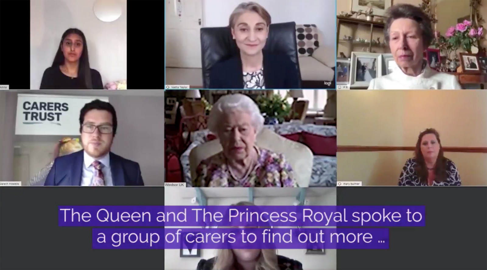 Кралицата проведе разговор с четирима служители на Кей Пи Ем Джи (KPMG), които се включиха от различни части на Великобритания, за да обсъди с тях по какъв начин оформят те бъдещето на компанията.