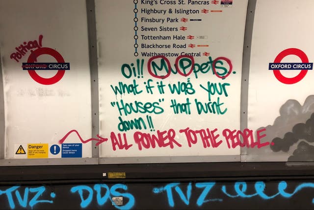Пътуващите по линията на лондонското метро, между Виктория и Бейкърлу. Станаха свидетели на графитните драсканици на неизвестни за сега лица. Не са пощадени и графитите произведения на изкуството, официално изложени на Оксфорд Сиркъс в памет на загиналите лондончани в ужасяващият пожар в жилищният блок Гренфел в западната част на британската столица.