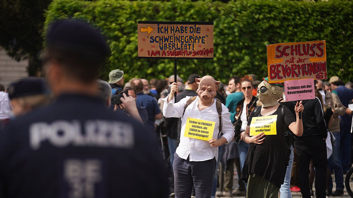 Демонстрантите не носеха маски и не спазваха предписаното разстояние от минимум един метър помежду си. Затова пък някои от тях бяха облечени в предпазни костюми и с бели маски на Арлекин, развяваха австрийски знамена и опъваха транспаранти "Да пазим родината вместо устите си".