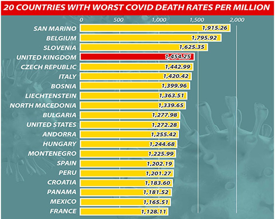 първите двайсет държави с най-голяма ковид-смъртност на 1 000 000 човека население.