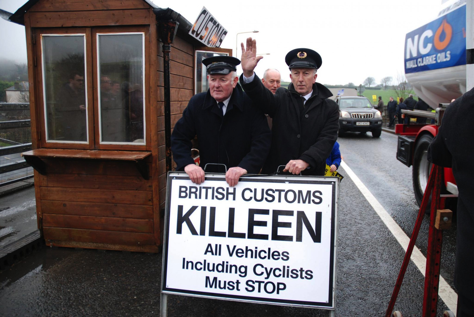 снимка: границата между самостоятелната държава и член на ЕС - Северна Ирландия и британската част от Севрна Ирландия, която е под британско управление и реално извън Обединена Европа. .