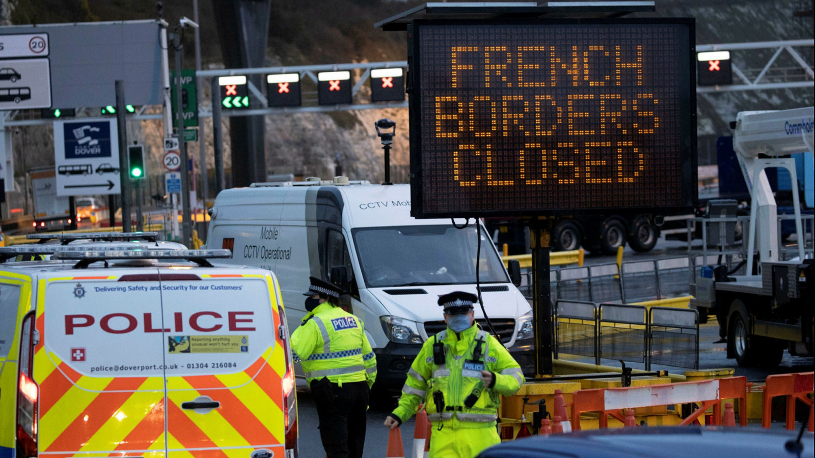 затворените френски граници с Великобритания на Дувър и Фолкстон (Евротунела_ - снимката от преди Коледа)