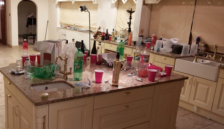 Става въпрос за Knoll House в Sewardstonebury, близо до Chingford, в 17:00 часа в събота. В началото компанията отвътре не искала да отвори, твърдейки, че правят музикален клип, което обяснявало силния шум. Но служителите настояли да влязат и в крайна сметка заварили 18 души, които просто си правили купон. Полицаите веднага блокирали помещението и наложили глоби на всички присъстващи, след което ги освободили.