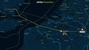 снимка: самолет на турските авиолинии. малка снимка: маршрута на полета с неочаквания пътник.