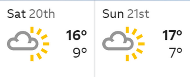 очакваните температури за следващият уикенд в Лондон.