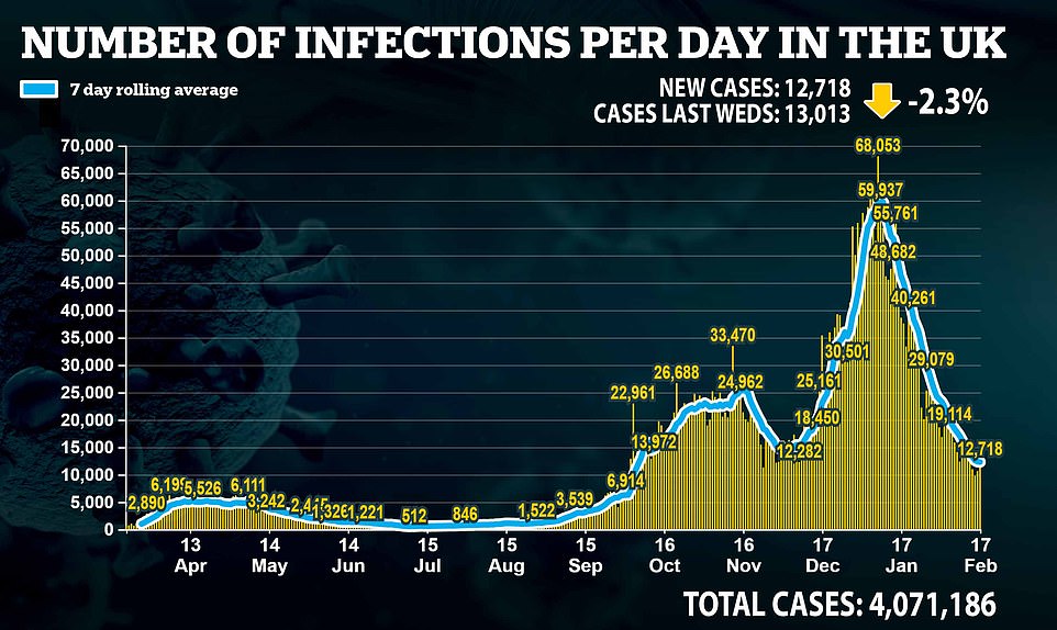 Въпреки тези данни, темпа на разпространение на ковид-вируса все още е високи, като между 4 и 13 февруари, всеки един на 200 теста е положителен. Това е подобно на нивата, наблюдавани в края на септември 2020 г.