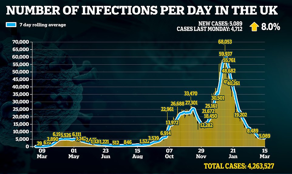 Седмичното увеличение от 8% на новоинфектираните с коронавирус се дължи на огромния брой направени тестове след като училищата отвориха врати и започна всекидневно масово тестване на учениците от средните училища и училищните персонали. Ваксинираните са почти 25 000 000 човека на Острова. Новини Лондон