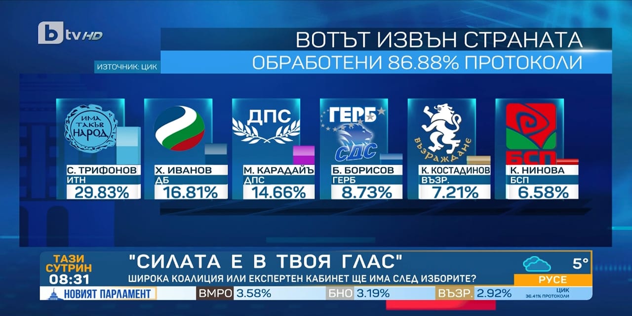 Така отворени останаха опциите единствено към "Демократична България" и "Изправи се! Мутри вън!". Самият Трифонов пък подходи нестандартно. Той обяви, че победител е народът, а и... че има симптоми на коронавирус: