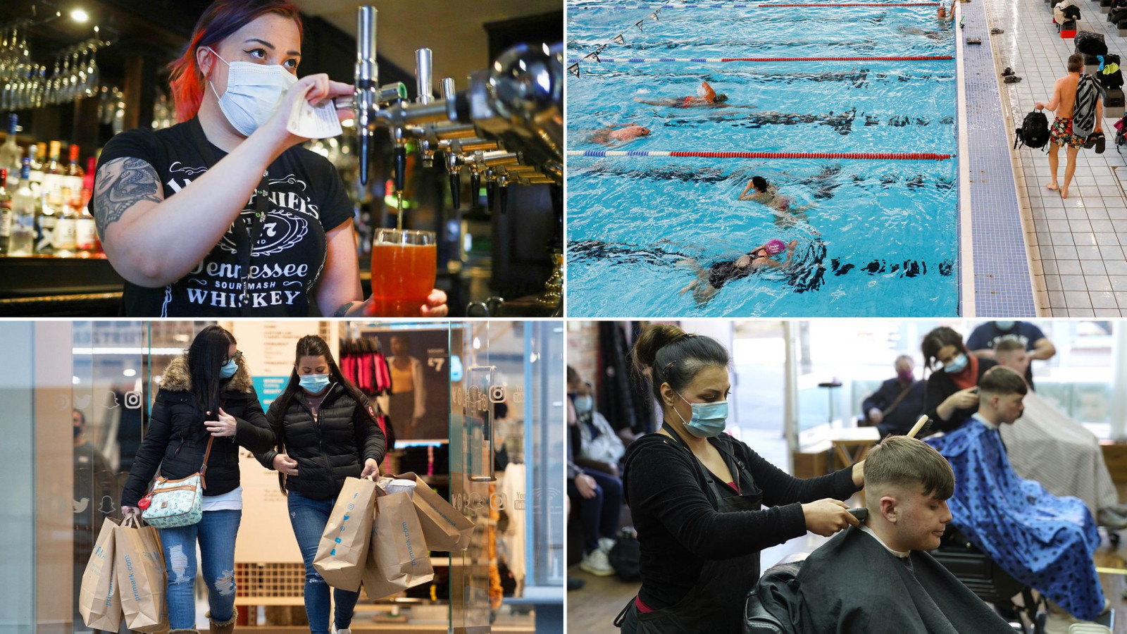 За първи път от месеци магазините, кръчмите и фризьорските салони са отворени отново. Търговските райони привлякоха днес тълпи от пазаруващи като според компанията за пазарни проучвания Springboard отчете скок с 218 процента спрямо миналата седмица и с 340 спрямо предишната.