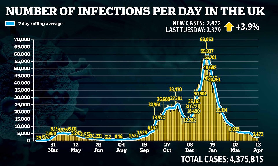 За последните 24 часа, Обединеното Кралство регистрира едва 23 смъртни случая, дължащи се на коронавируса, а новозаразените с опасния вирус са 2472, ваксинираните на Острова надхвърлят  40 млн. човека от който малко под 10 млн. са получили и двете дози от ковид-препарата.