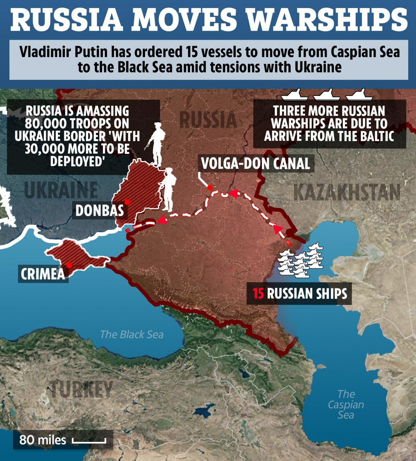 "Като част от контролната проверка за зимния период на обучение, 15 кораба на Каспийската флотилия, включително три артилерийски и осем десантни лодки, както и помощни кораби, извършиха преход от Каспийско към Черно море", се казва в съобщението.
