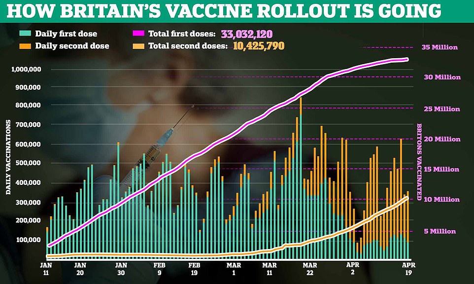 Графика изобразяваща ваксинационния прогрес във Великобритания.