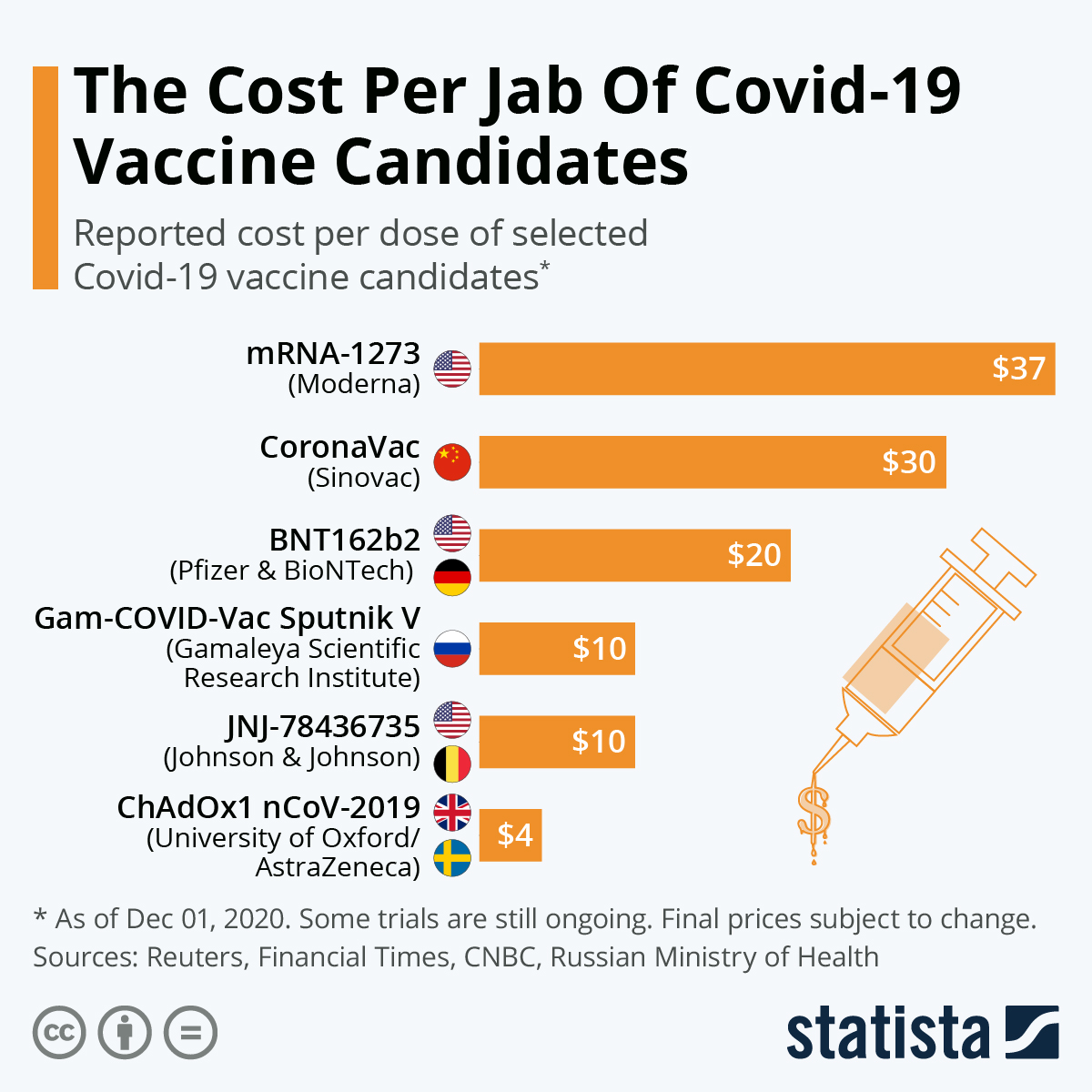 Най-малко 1 002 938 540 дози са поставени в 207 страни и територии според изчисления по официални източници. Над половината - 58 процента са поставени в три страни: САЩ с 225,6 милиона, Китай с 216,1 милиона и Индия със 138,4 милиона.