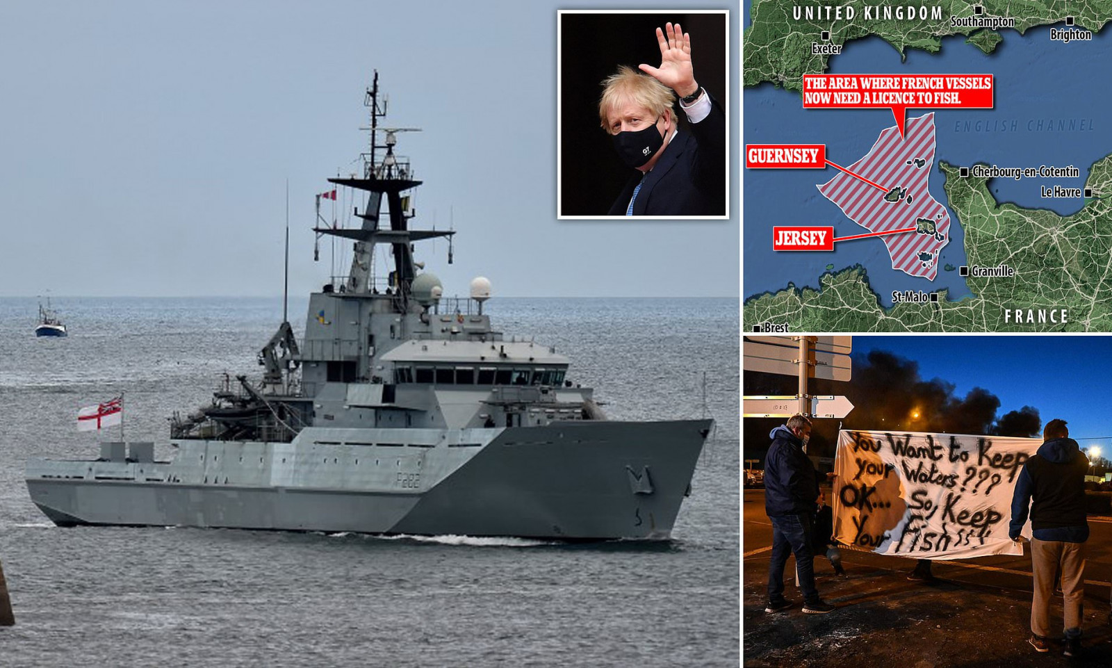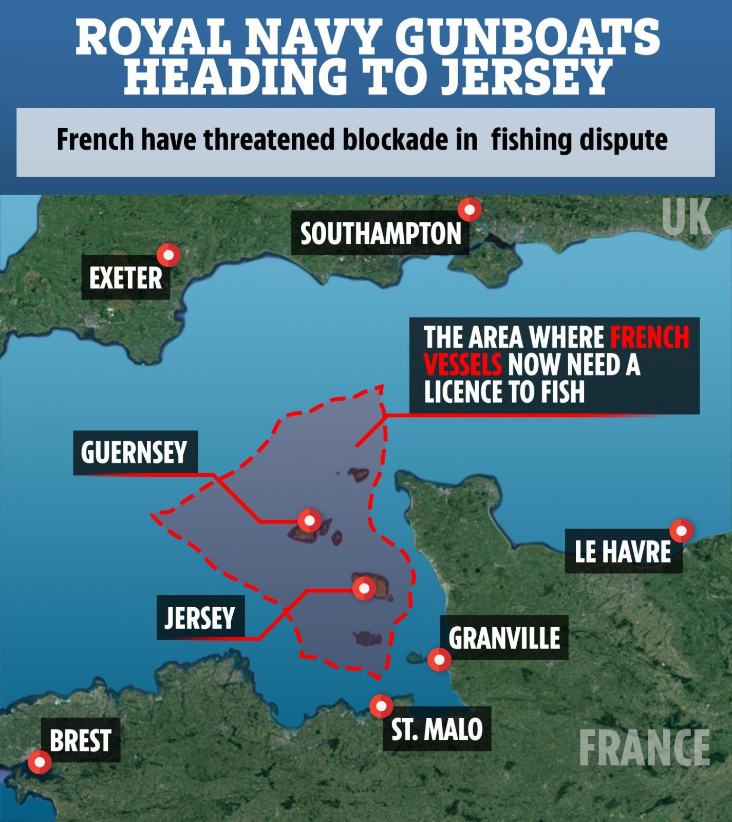 Военните кораби от Кралския британския флот, HMS Severn и HMS Tamar ще патрулират по канала и около остров Джърси, въоръжени с оръдия и картечници, потвърди Министерството на отбраната. Това решение бе взето от кабинета на Борис Джонсън вчера, след като обяви че Франция отправя непропорционални и неприемливи заплахи за спиране на електричеството, а разузнаването е съобщило, че се очаква голяма флотилия от френски рибарски лодки да блокират подстъпите към пристанищата на остров Джърси.