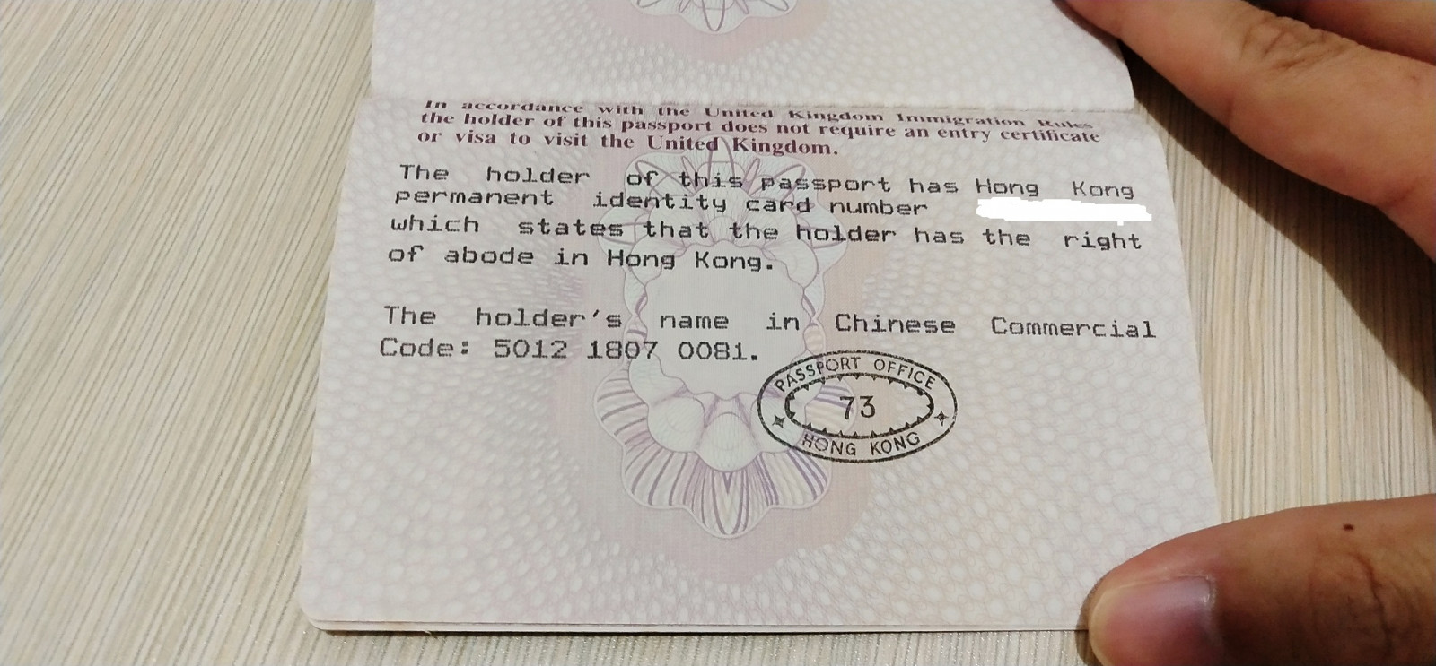 ПОЯСНЕНИЕ: Британски национален (задграничен) паспорт, обикновено наричани BN (O) паспорт British National (Overseas), е документ за лица с британско отвъд морско гражданство. Паспортът е издаден за първи път през 1987 г. след Хонконгския закон от 1985 г.