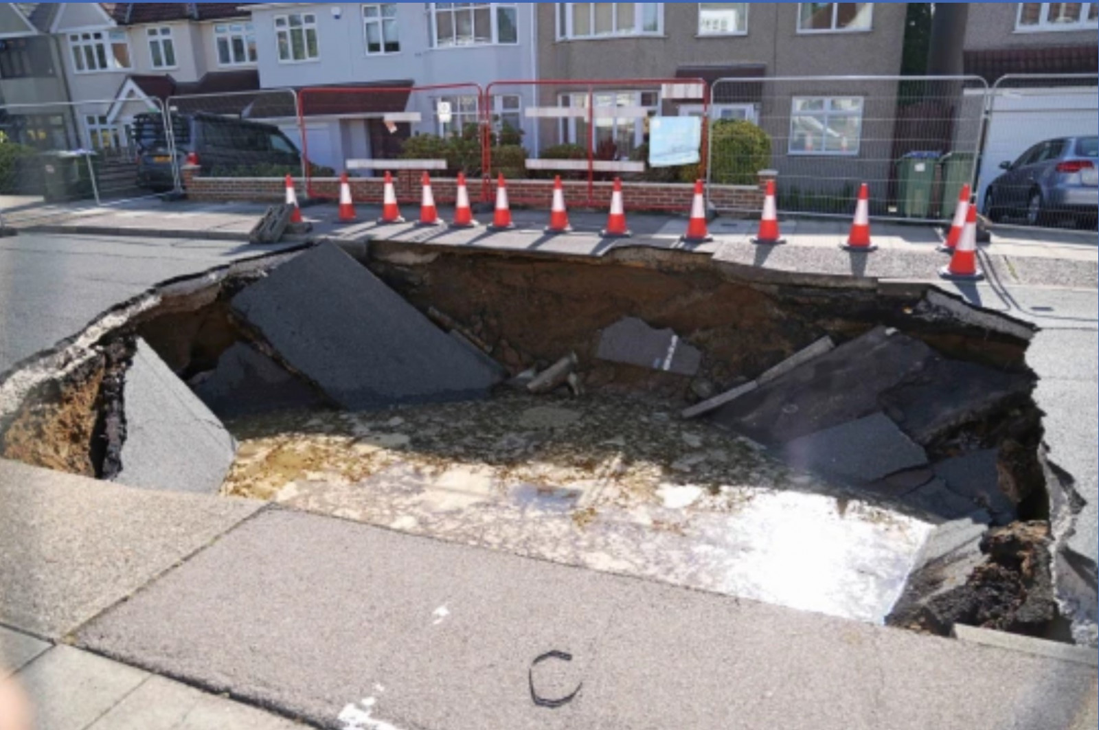 Бездната е погълнала само един мотоциклет, пише лондонския Метро, който предполага че проблемът е предизвикан от спукани тръби. Улицата е заобиколена от къщи строени през 1930-та година, макар че всички комуникации под пътя да са били редовно подменяни и ремонтирани е възможно да е имало пропуски, пише още популярното онлайн издание.