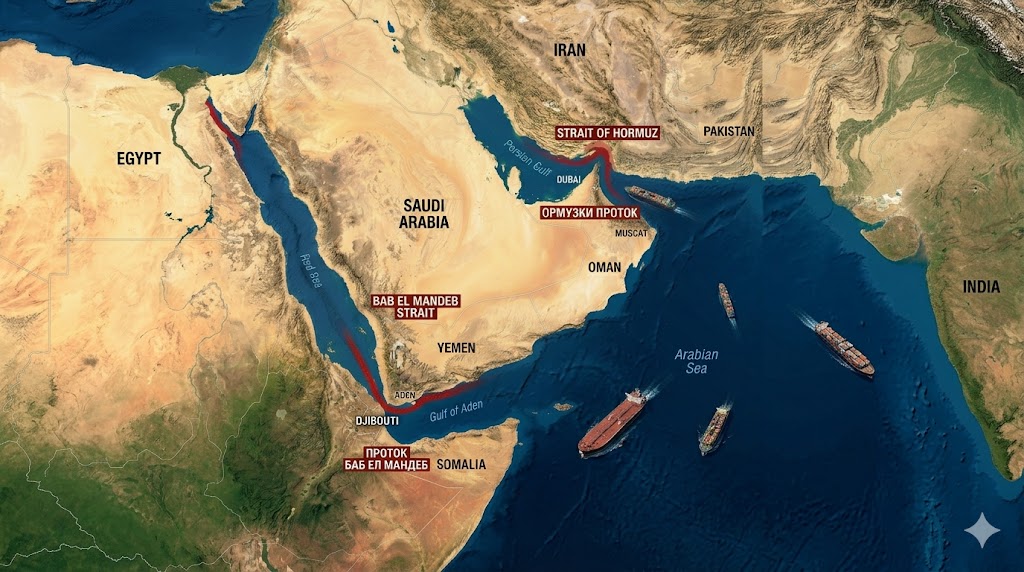 Намесата на йеменските бунтовници хути в конфликта в Близкия изток на страната на Иран засилва опасенията, че петролната криза, засягаща световната търговия, може да се задълбочи драстично. Под заплаха е поставен проливът Баб ел-Мандеб – ключова артерия за глобалните вериги за доставки.