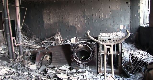 Снимки от вътрешността на сградата на изгорелия високоетажен блок показват размера на щетите.