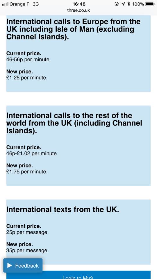 Последиците от решението на Великобритания да излезе от Европейския съюз са вече на лице и засягат много аспекти от живота на британците, видя "Новини Лондон". Един от най-големите мобилни оператори на Острова - "Three Mobile" увеличи драстично таксите си за международни разговори с Европа и света. Както можете да видите на снимката, те са завишени почти двойно. Наши кореспонденти предадоха, че същото явление се наблюдава и в големите хранителни магазини и супермаркети.