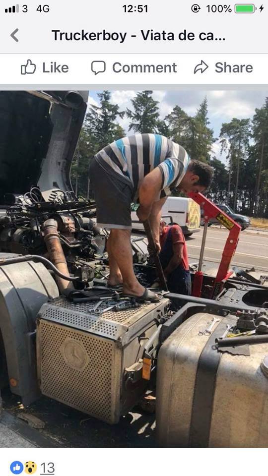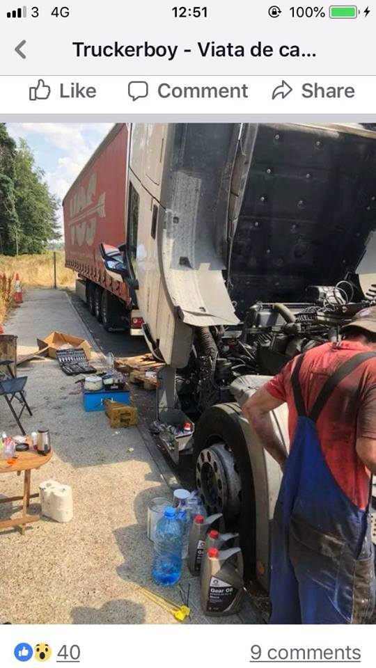 До "Новини Лондон" достигна призив за помощ от страна на наш сънародник, закъсал на пътя А11, посока Thetford, близо до Elveden War Memorial. Според информацията на човека, подал сигнала, българският шофьор има проблеми със скоростната кутия на возилото си от седмица, но от фирмата, за която работи не му обърнала внимание. Сега той се опитва да я ремонтира сам и то под жаркото слънце. А знаем, че днес температурите не са особено подходящи са подобна дейност, особено насред шосето!