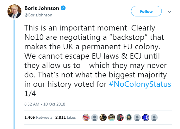 Остро реагира бившият британски външен министър Борис Джонсън на плана за Брекзит, предлаган от премиера Тереза Мей, предаде "Ройтерс". Той направи това на личния си профил в "Туитър".