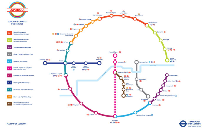 Добра новина за пътуващите в "Външен Лондон" (Outer London). Кметът Садик Кан потвърди разширяването на мрежата от експресни автобуси Superloop през тази година.